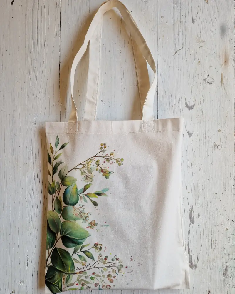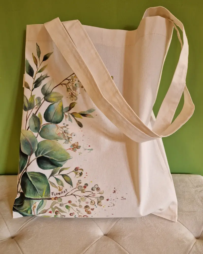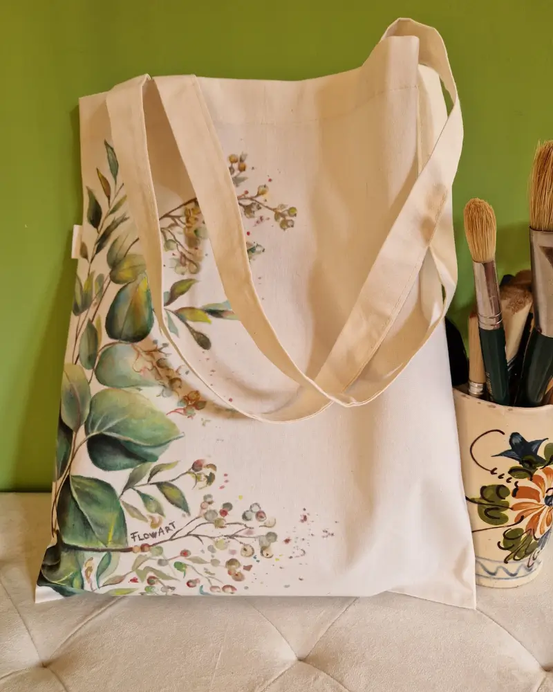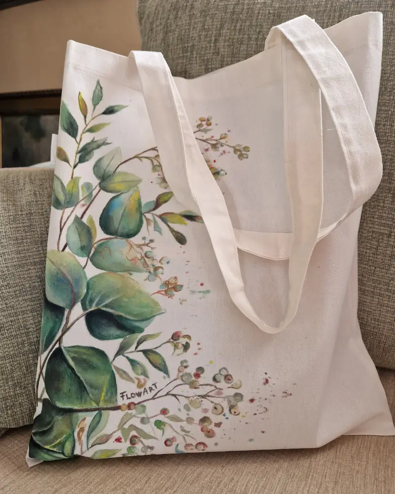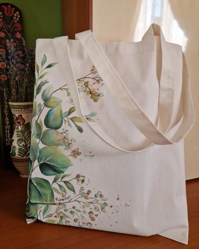 „Eucaliptus” este o geantă pictată manual, inspirată din frumusețea formelor organice și a tonurilor naturale.
