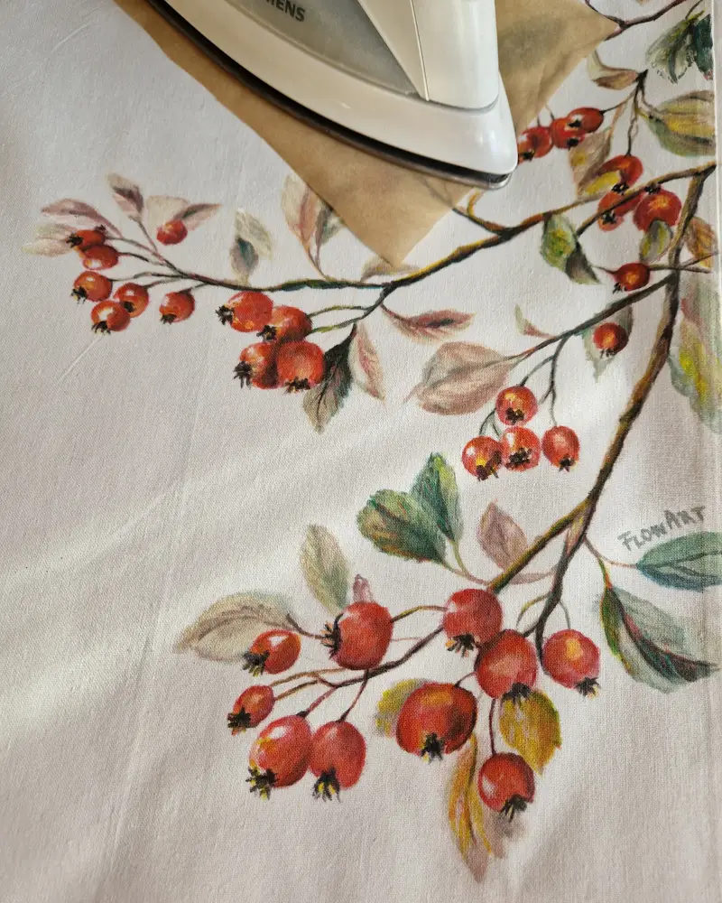 Fiind un material natural, pânza de bumbac poate să se micșoreze ușor la prima spălare (aprox. 1–2 cm). Aceasta este o caracteristică normală a țesăturilor naturale și nu afectează aspectul general al produsului.